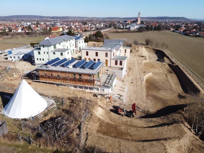 Die Entwicklung vor Ort ist beeindruckend. Die Gebäude nehmen Form an, ich konnte meine Wohnung immer wieder im Rohbau besuchen. Badeteiche, Ruhezonen, Kinderbereiche, ein Amphitheater – all das wächst Stück für Stück. Ein Tipi steht schon, der Gemüsegarten bleibt unser ruhender Pol.